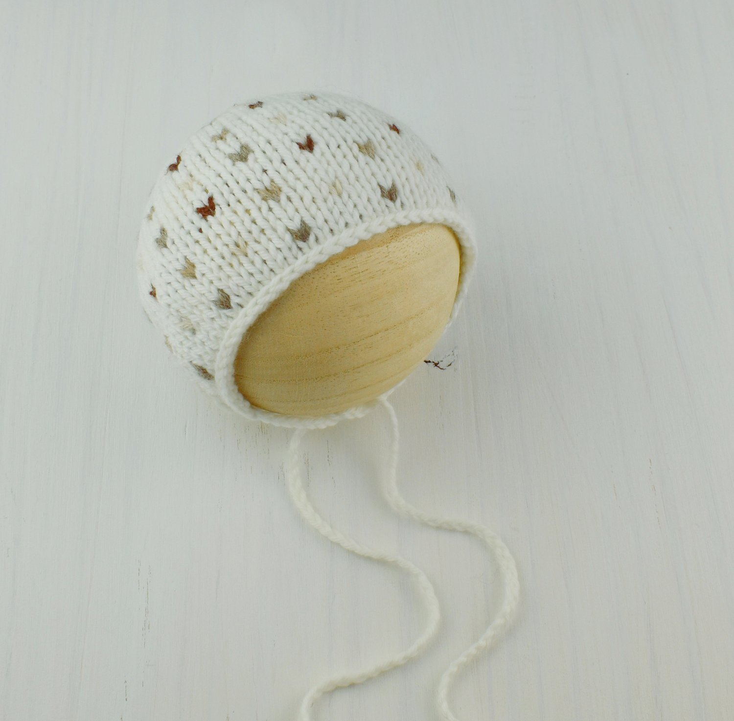 This bonnet is hand knit with all natural fiber alpaca and silk blend yarn and it features sweet little heart details.